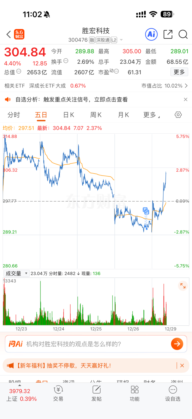 $胜宏科技(SZ300476)$ 我是韭菜