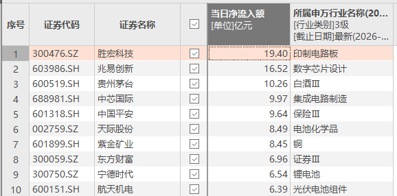 资金风向标 | 胜宏科技、兆易创新获大额资金净流入