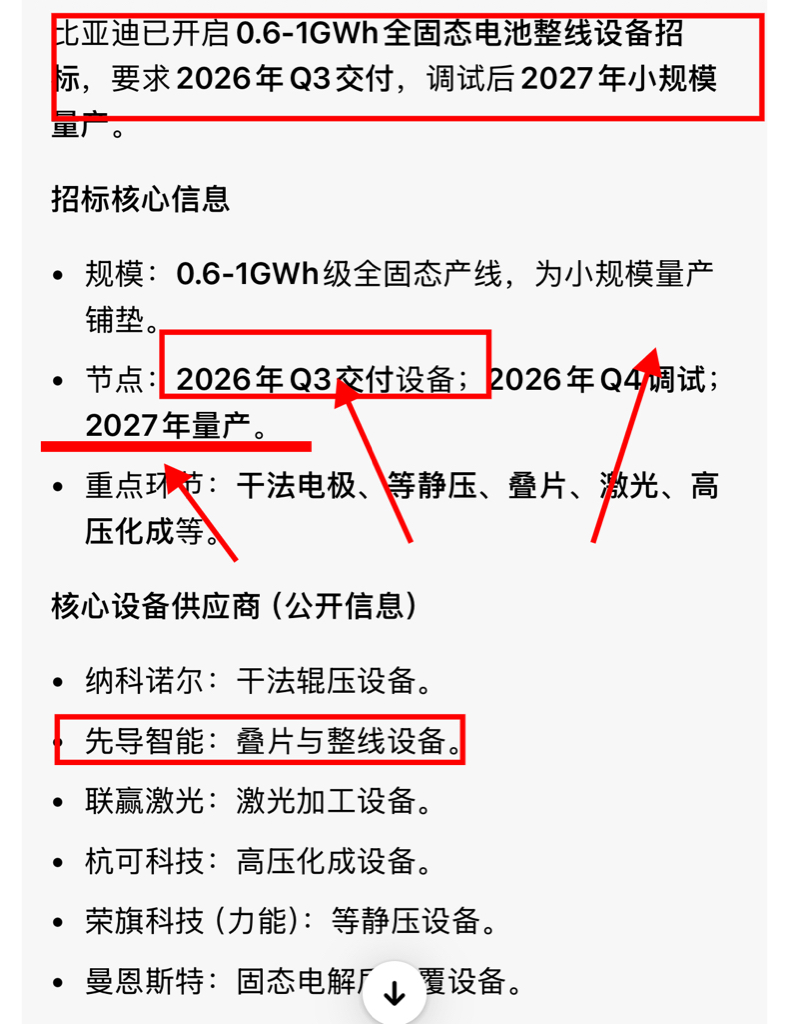 最新王炸消息来了~今天爆光比亚迪全球固态电池设备招标3季度必须交付!关注~先导智能~全固态电池隐形竞赛开始了……
