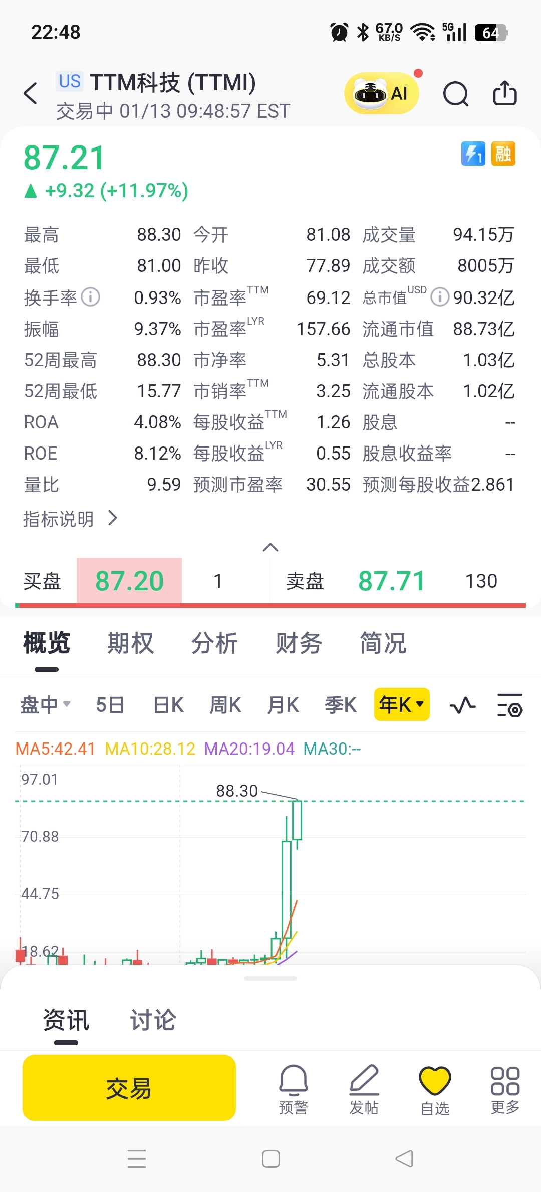 $胜宏科技(SZ300476)$ 美股pcb龙头三天暴涨新高了