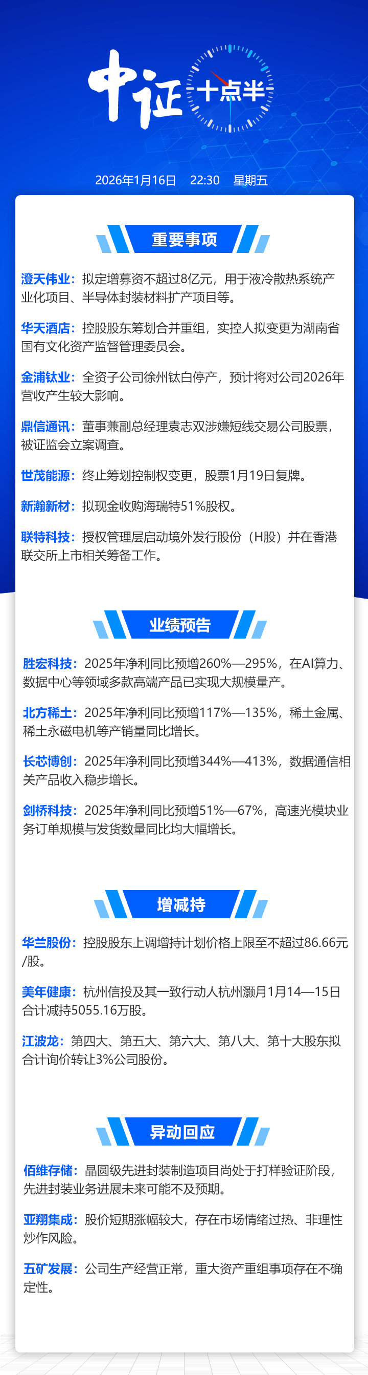 【中证十点半】胜宏科技2025年净利润预增260%—295%;鼎信通讯副总经理被证监会立案调查;联特科技拟赴港上市