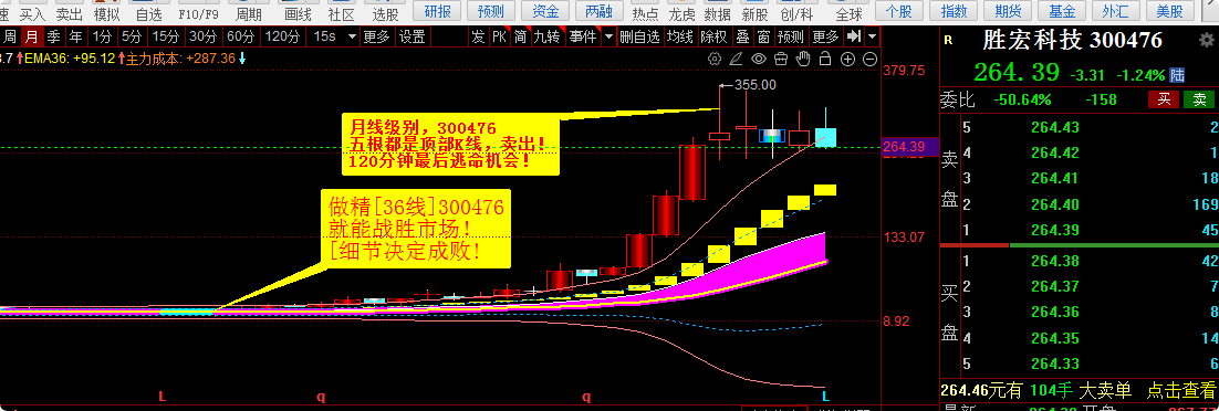 月线级别,五根都是顶部K线,卖出!120分钟最后逃命机会!