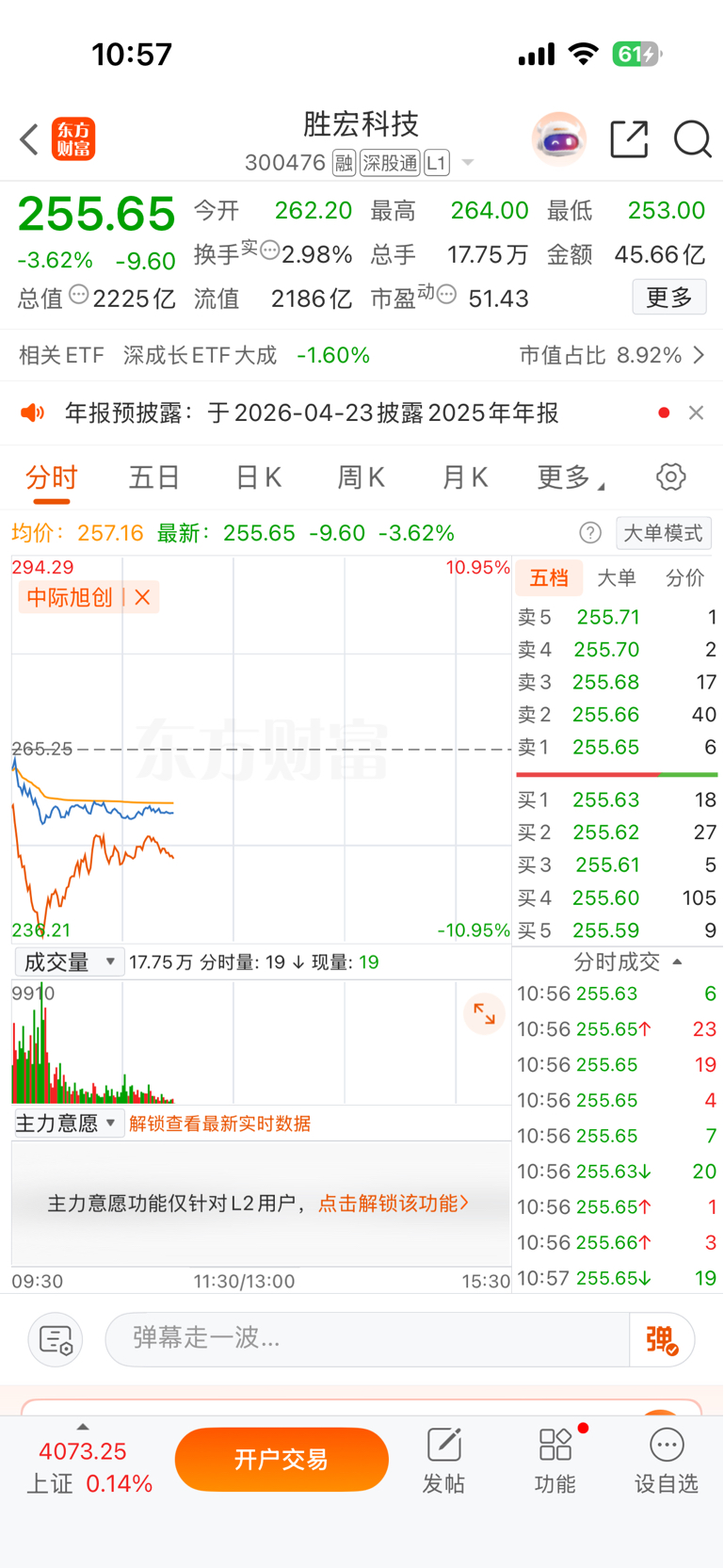 $胜宏科技(SZ300476)$ 中际低点反弹了 5 个点,这货走成一条线