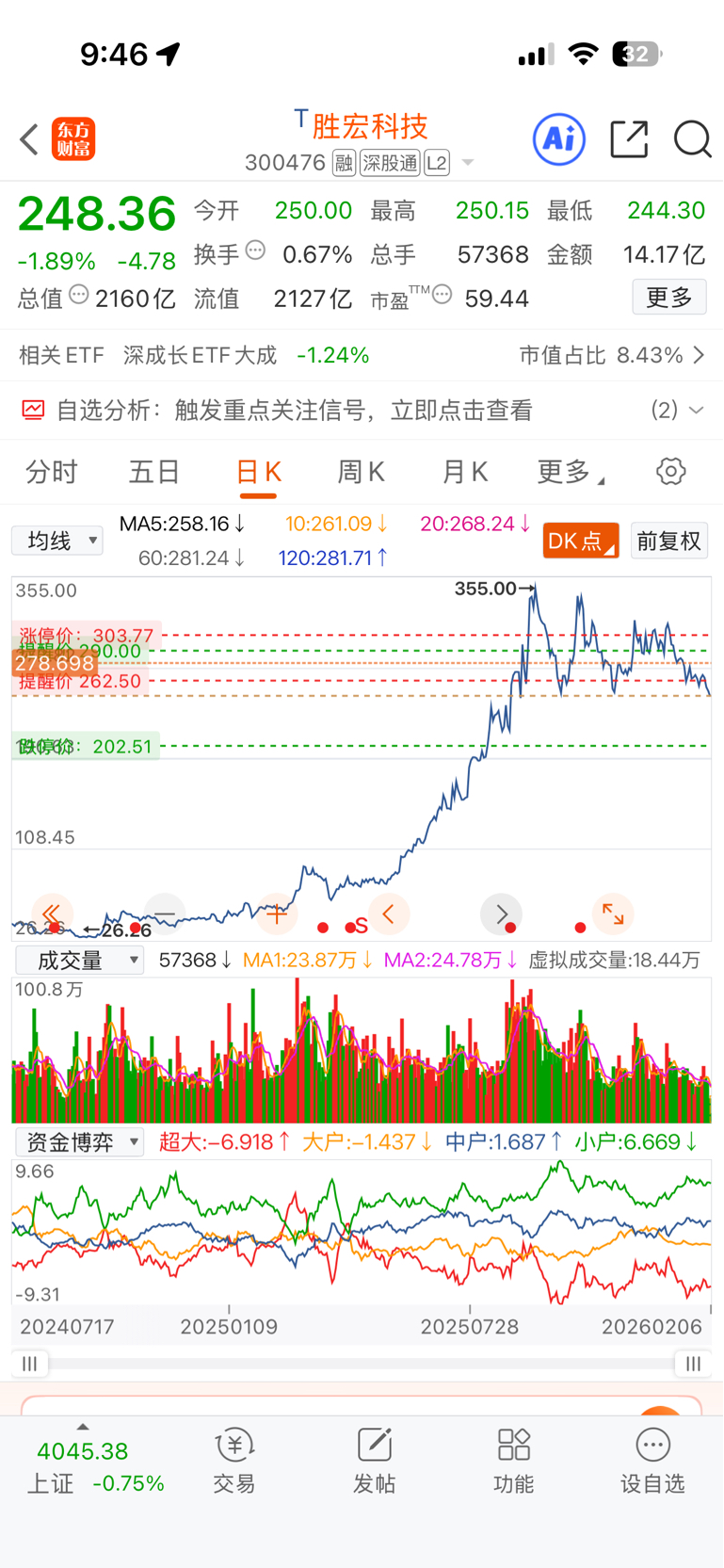 $胜宏科技(SZ300476)$ 应该还有一次箱体震荡的机会,后面估计要瀑布杀