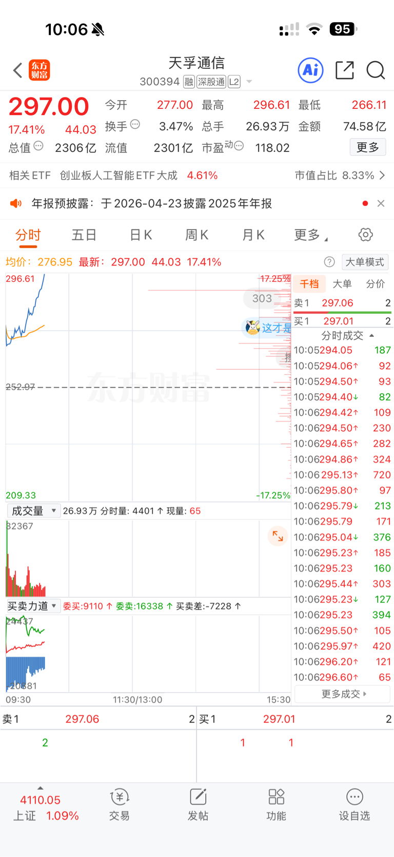 天孚马上涨停了
