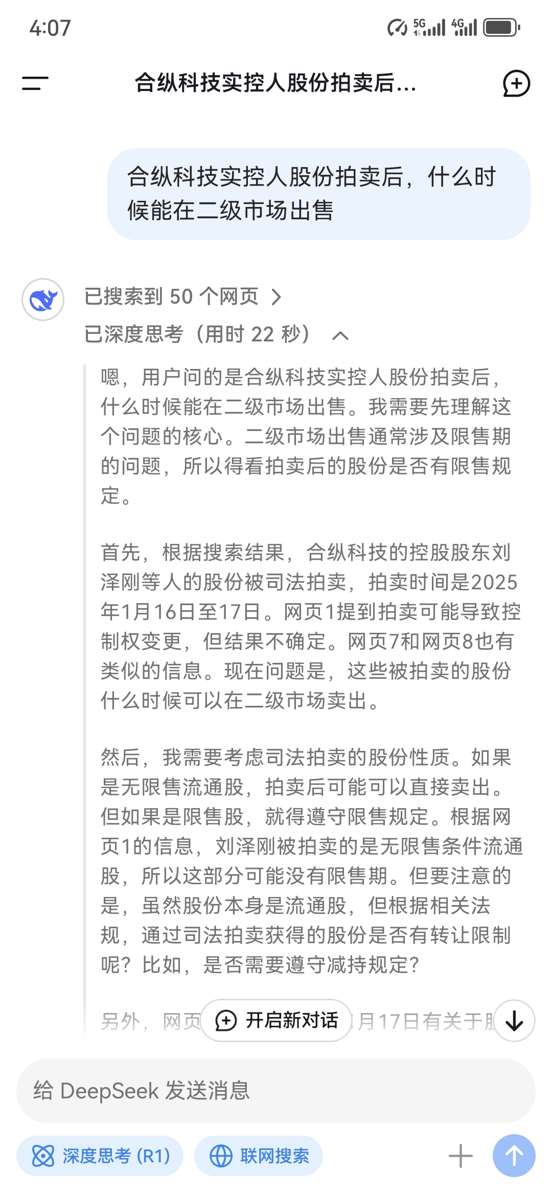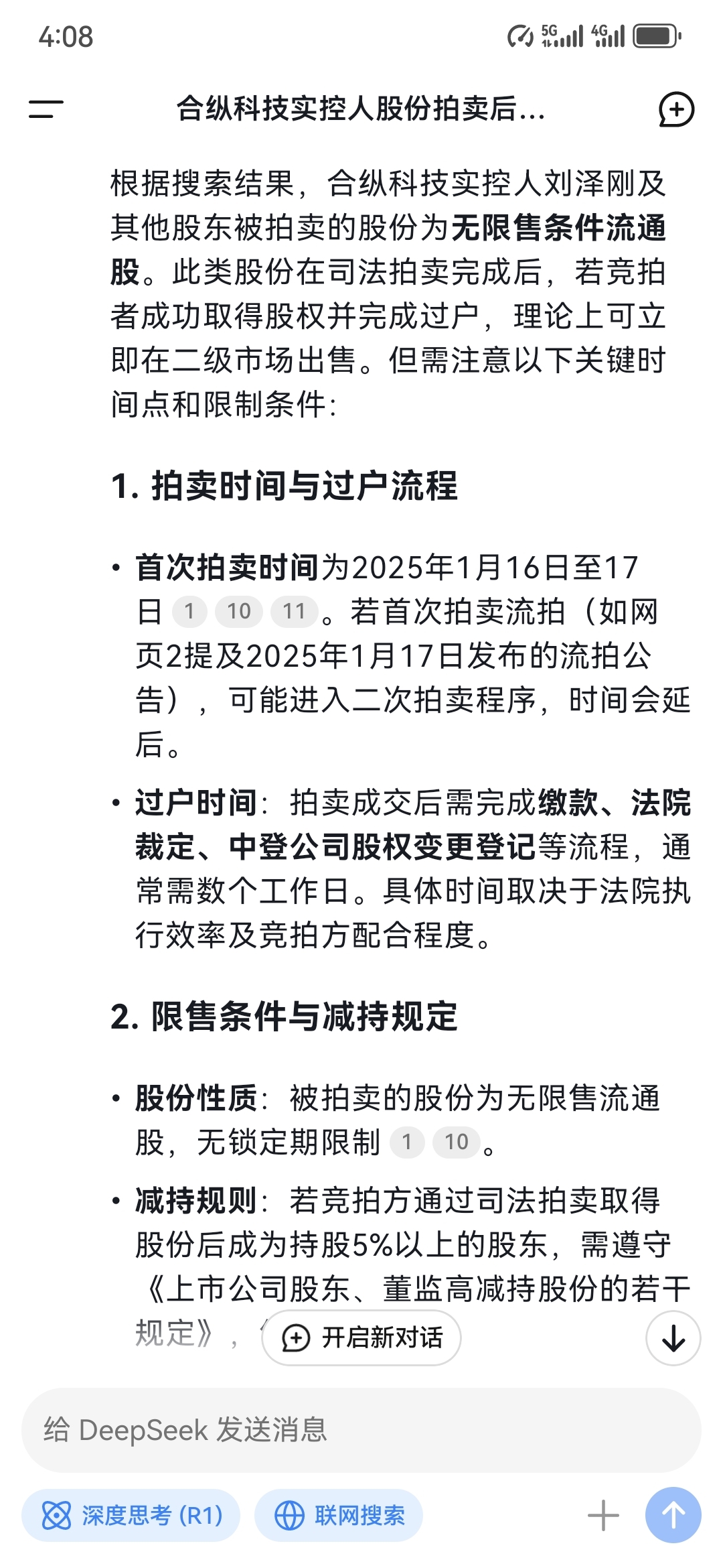 两人拍卖,不知道有没有达到持股百分之5%,如无,因为是无限售流通股,过户后就能在
