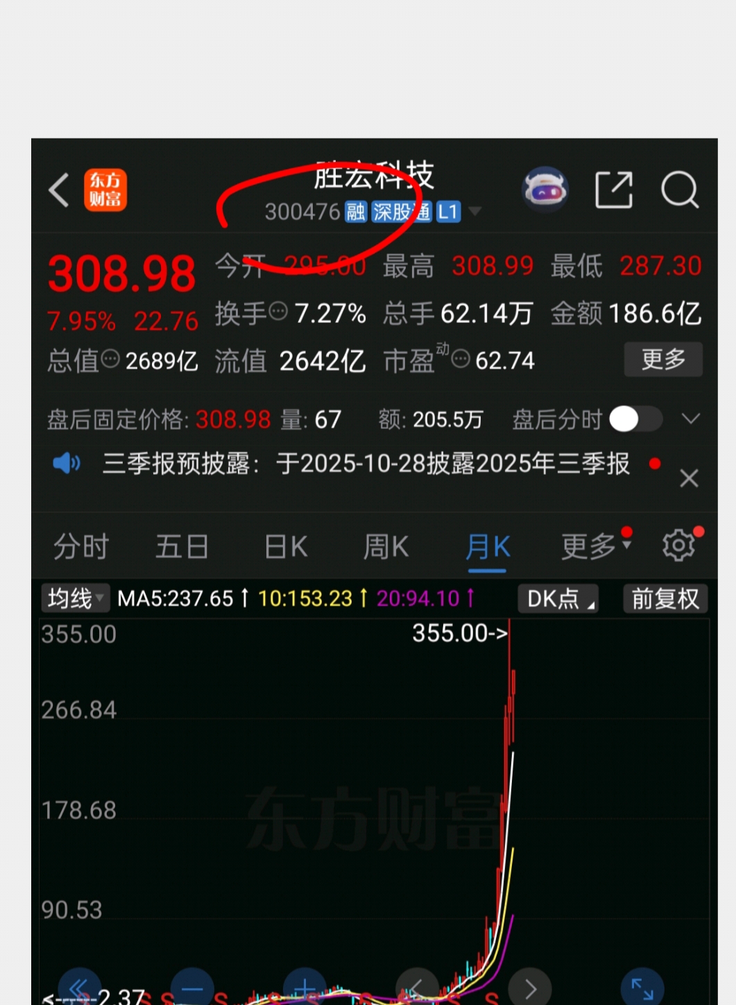 老股民记得同一批上市的,上隔壁300475香农芯创300476胜宏科技。最低起来