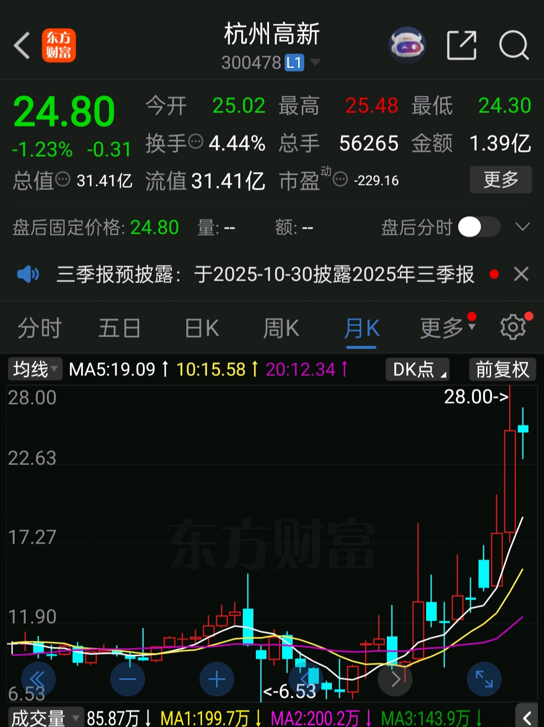 老股民记得同一批上市的,上隔壁300475香农芯创300476胜宏科技。最低起来都涨了30倍,300477隔壁邻居,丢人啊,下隔壁300478杭州高新也从6元上涨到25元4倍。300475。300476。300477。300478。同一批的没有比较就没有伤害