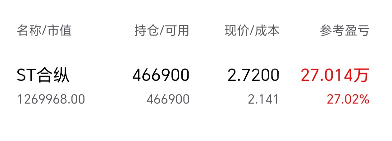 $ST合纵(SZ300477)$ 这票牛逼,小有盈余