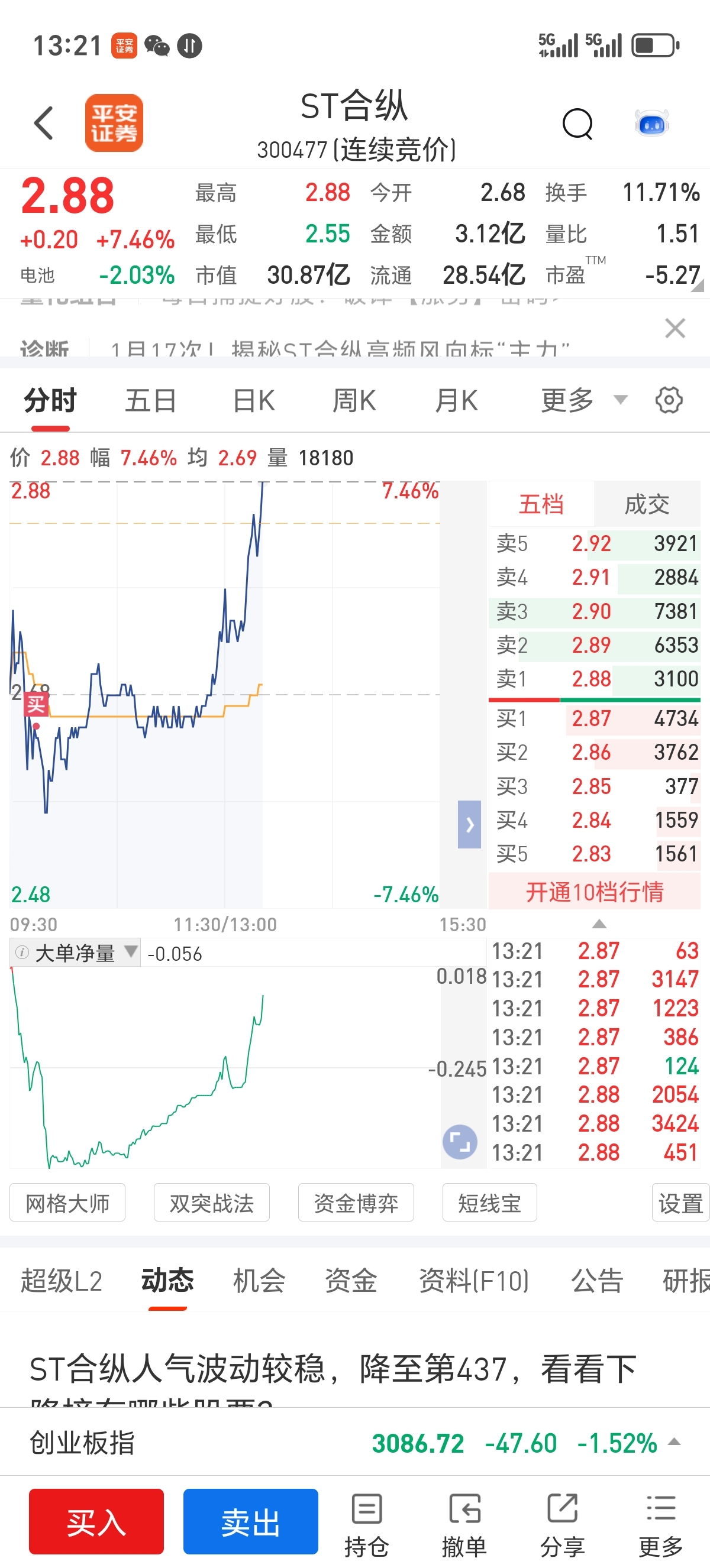 $ST合纵(SZ300477)$ 亏大了 早上265补的 看到261想把剩下的余额一起补的 没下手