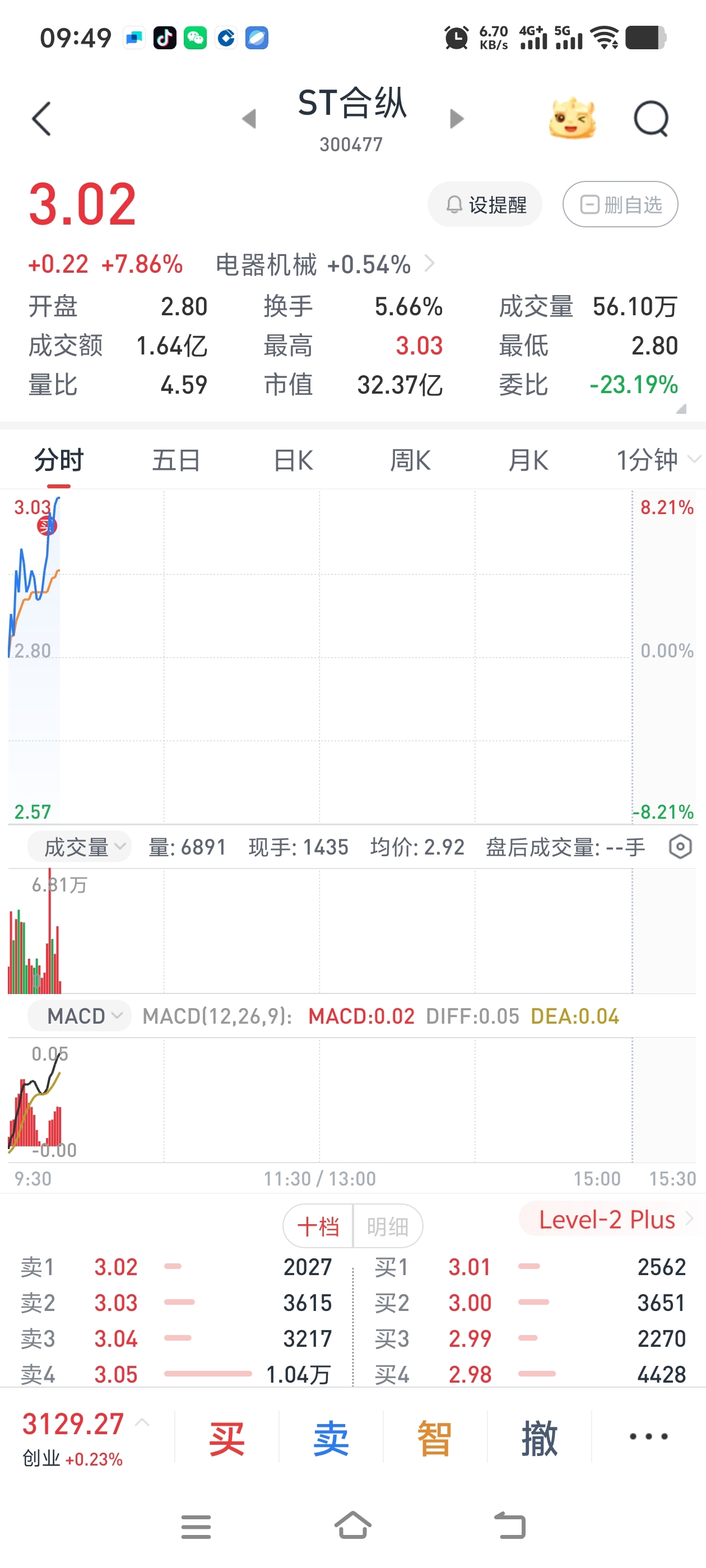 $ST合纵(SZ300477)$ 补完缺口加仓,说干就干