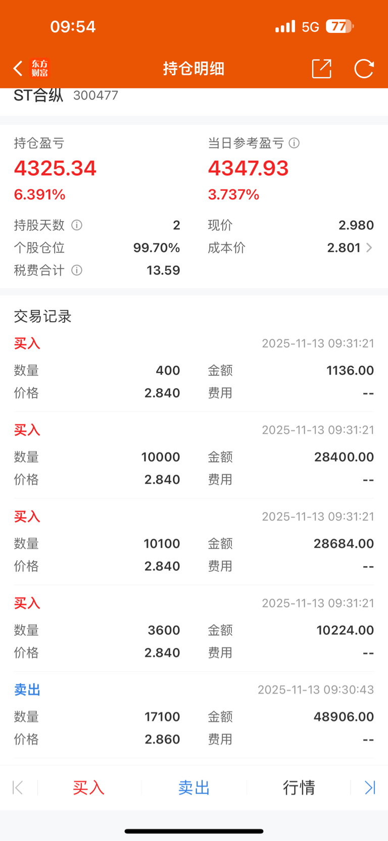 本来卖出中能电气的仓位想全仓买入的,结果手j点成了卖出,踏马~害得我又赶紧买了回