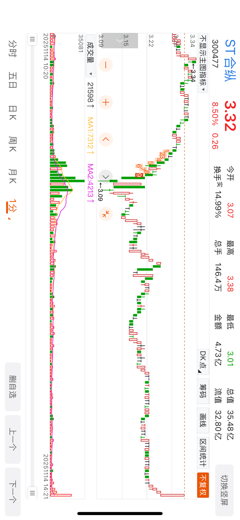 $ST合纵(SZ300477)$ 这个星期走势都一样,高开低走,尾盘拉起下班!刚盯了一下盘,眼都痛了,还好符合我预期!差点卖了