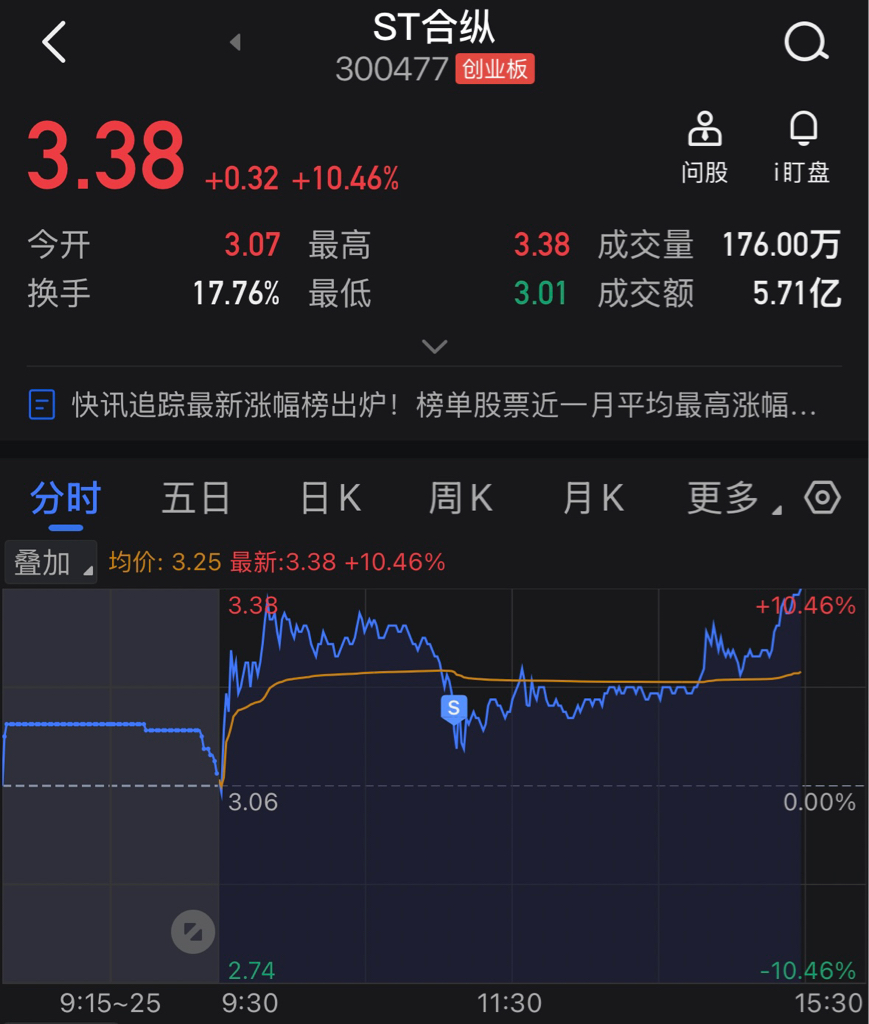 $ST合纵(SZ300477)$ 最低点被洗了,保本出也给出错了