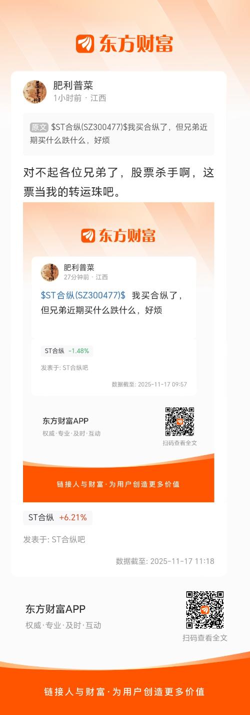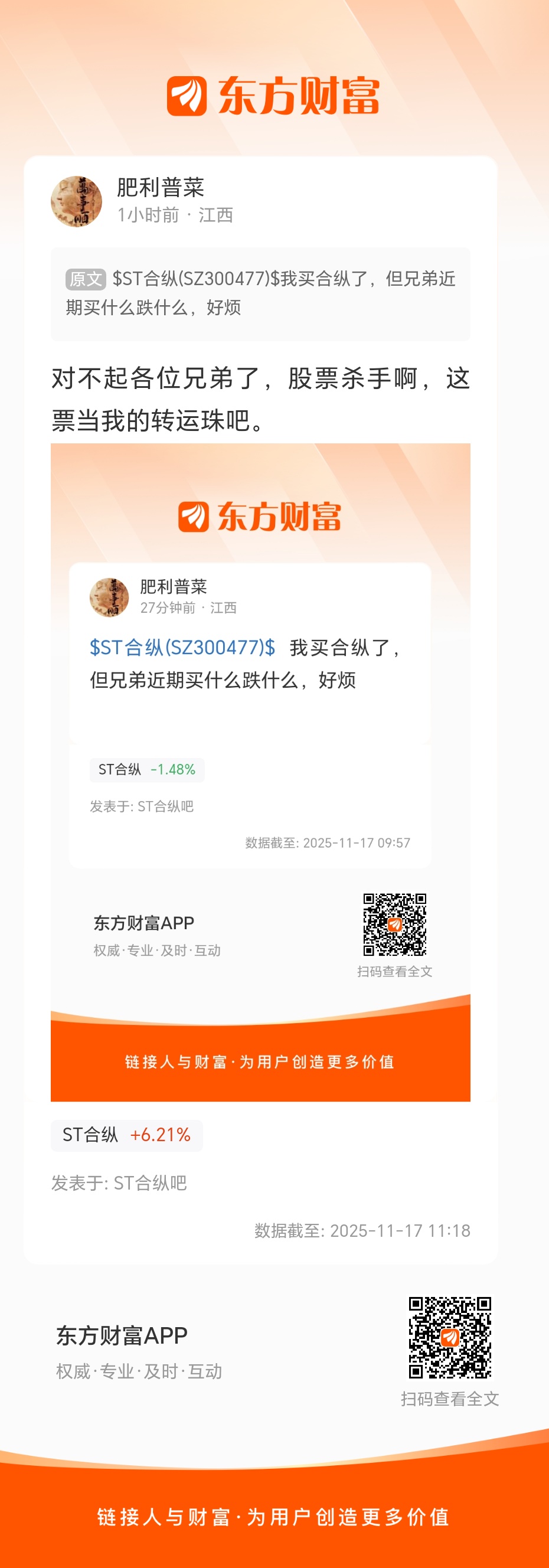 $ST合纵(SZ300477)$  我买合纵了,但兄弟近期买什么跌什么,好烦