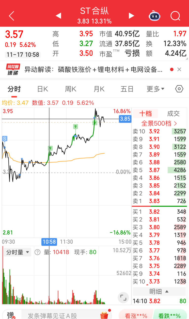 $ST合纵(SZ300477)$ 3.86我又砸,只要敢涨我就敢砸