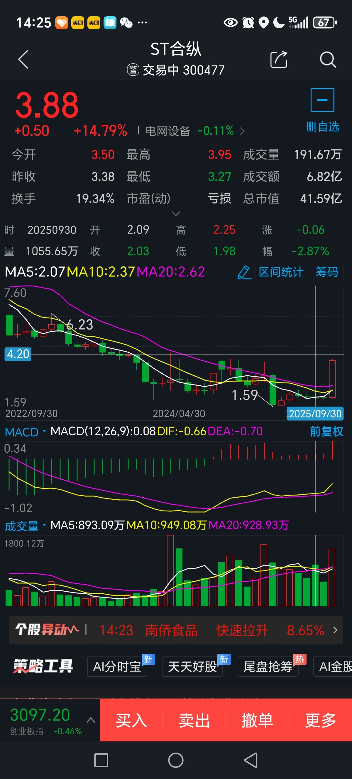 $ST合纵(SZ300477)$ 一口气走到两年前的箱顶了