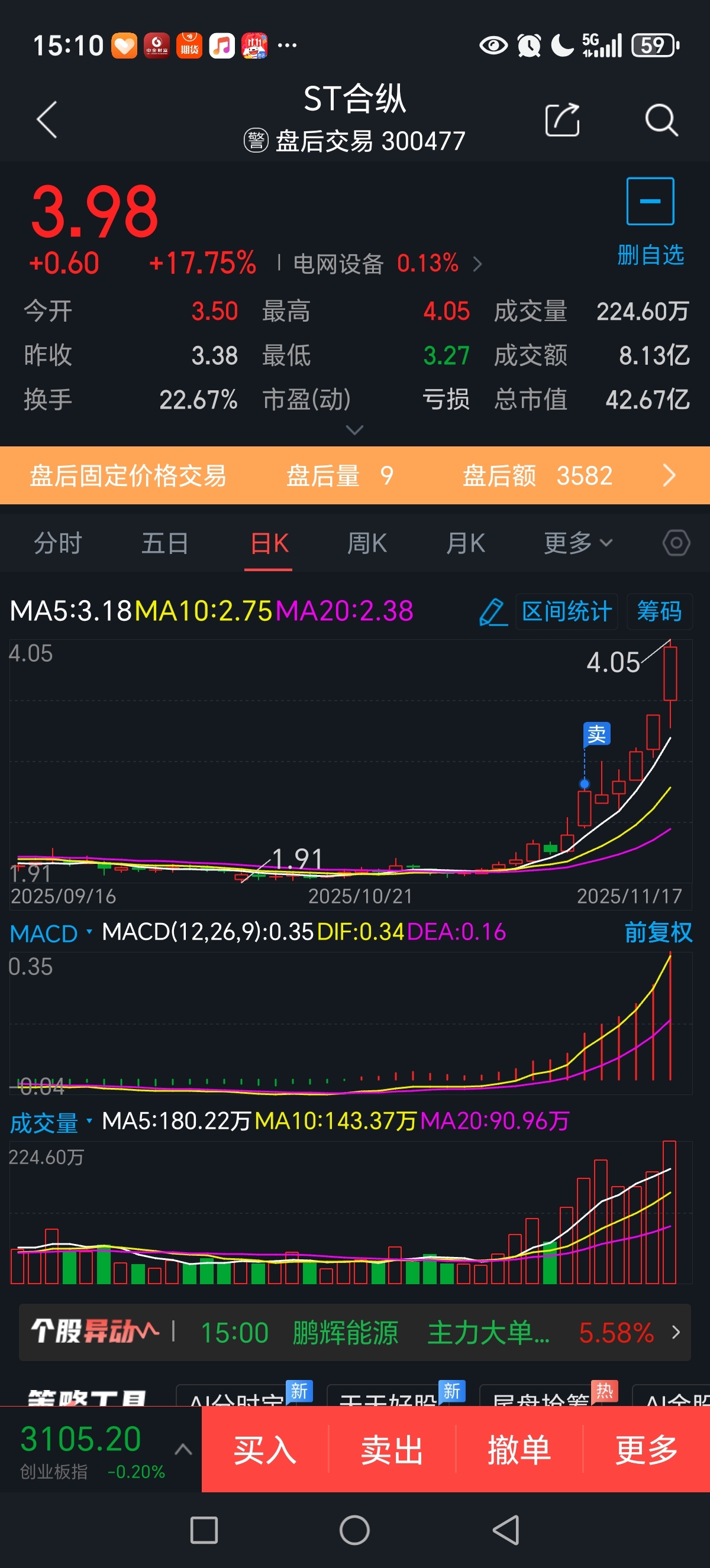 2.5卖了几万股出去外面抓3个票虽然都涨停,还不如留在合纵亏大了