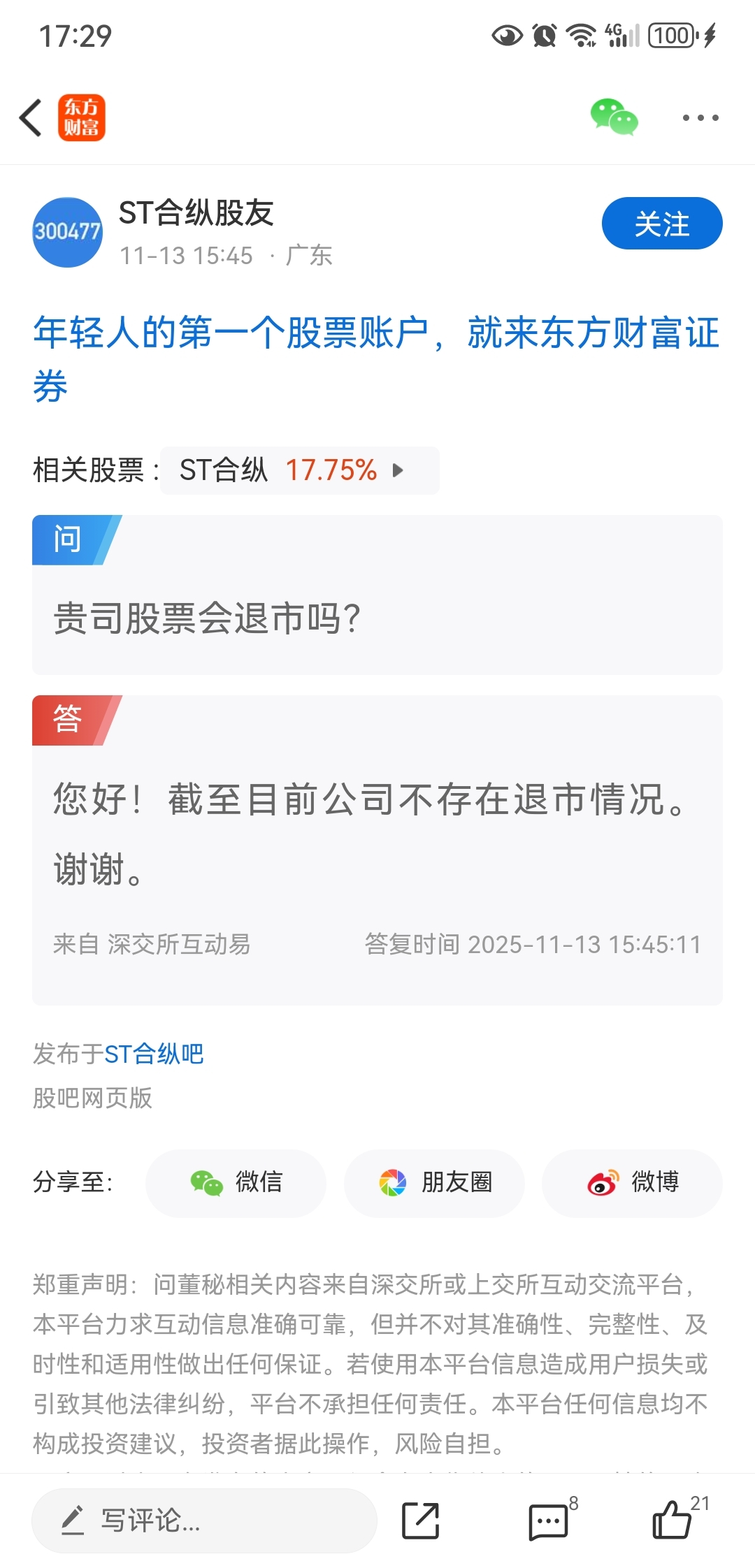 温馨提示: 1.根据《证券法》规定,禁止编造、传播虚假信息或者误导性信息,扰乱证券市场;2.用户在本社区发表的所有资料、言论等仅代表个人观点,与本网站立场无关,不对您构成任何投资建议。用户应基于自己的独立判断,自行决定证券投资并承担相应风险。《东方财富社区管理规定》