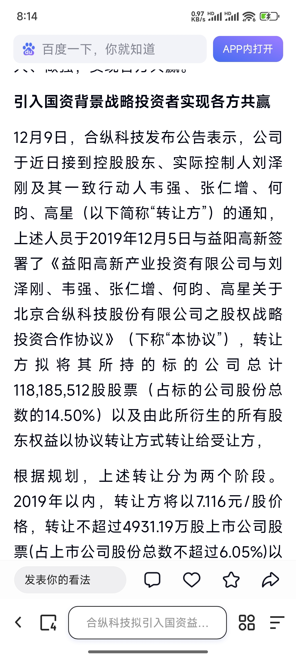 $ST合纵(SZ300477)$ 去了,还是真的!而且从19年到现在,国资一股未减!