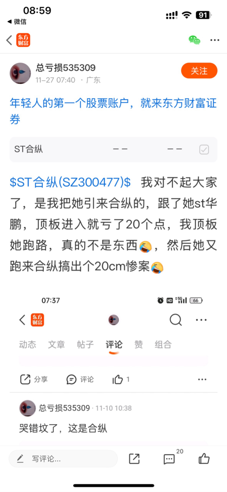 $ST合纵(SZ300477)$ 被疯阉鸡收割的粉丝敢说出来就勇敢了,那些跟帖的疯阉鸡粉丝团伙,都是大A可悲的散户,那些在你这个帖子里毫无人性,还指责一个小散,多么冷血。这只阉鸡是一个团伙,就是利用打造的人设,吸引粉丝,然后利用小作文瞎吹,没有什么挖掘能力,都是抄袭别人的,只是有团队,小作文配合,收割无知粉丝和散户,在这么恶劣的小散生存环境下,这种毒瘤应该坚决切除