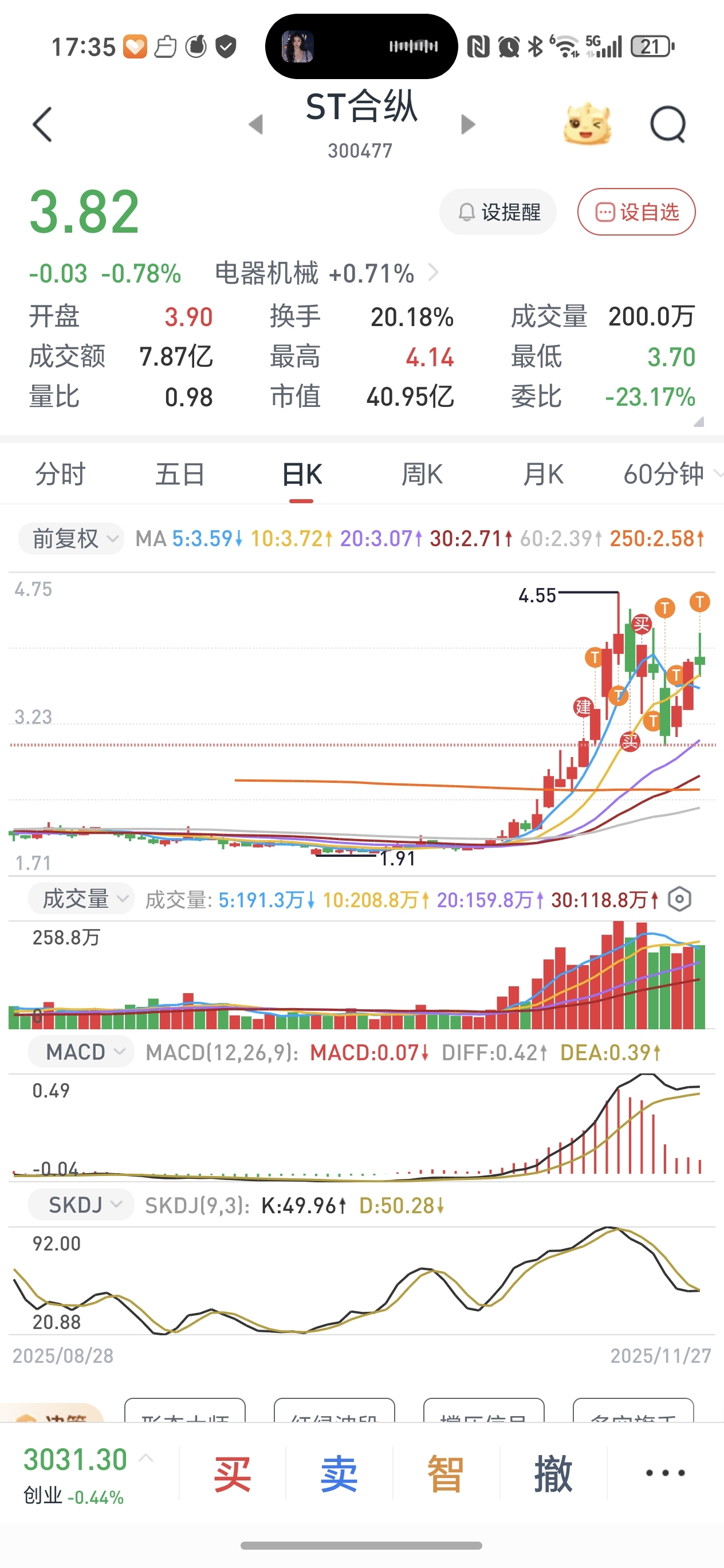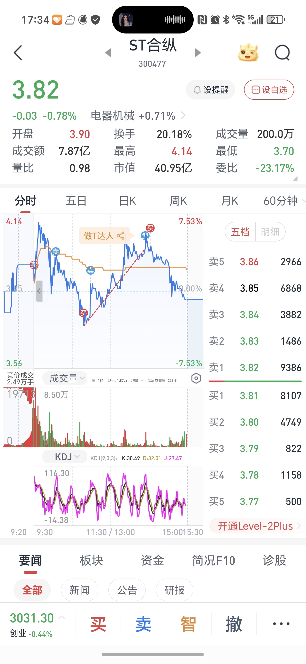 此票上下影线多,绝佳做T品种。