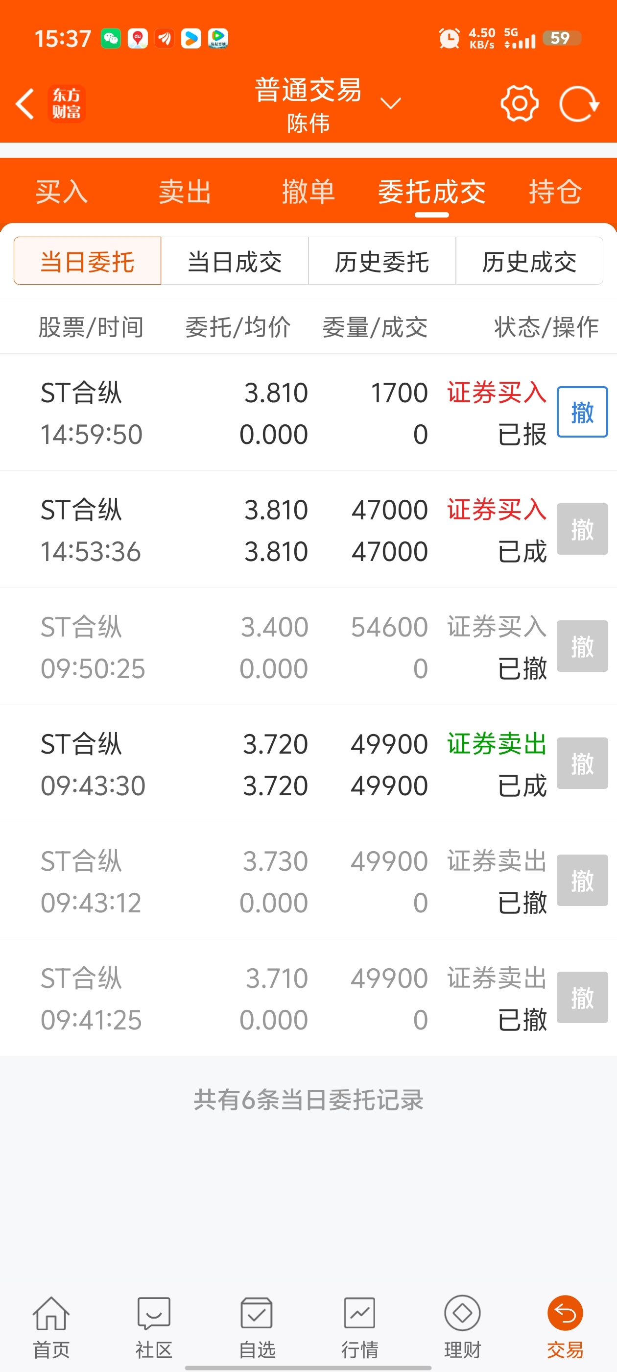 $ST合纵(SZ300477)$ 每天做着一手好t啊,5万多股做到4万多股
