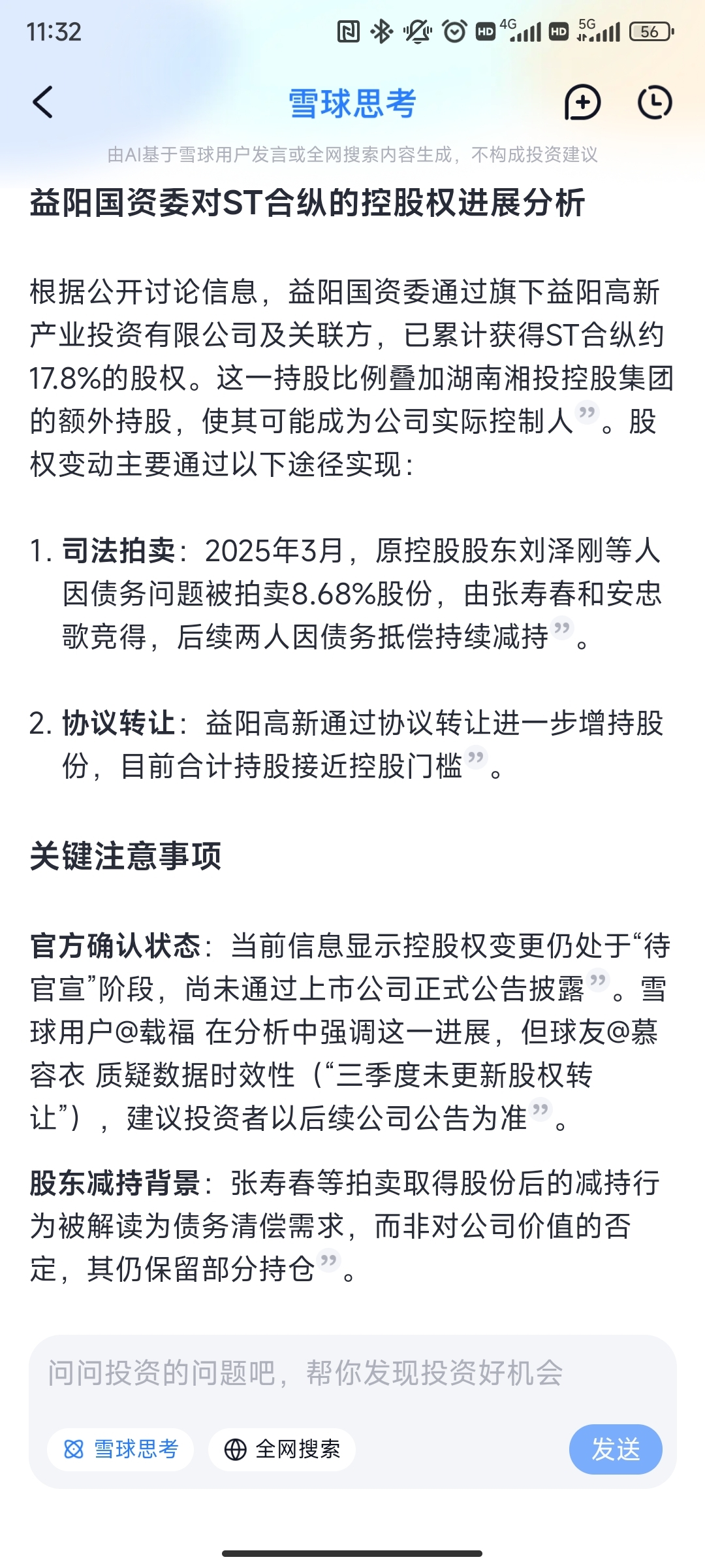 $ST合纵(SZ300477)$ 不知真假,十大股东里没有显示,但很多信息又说果子进入了。希望是真的吧,果子介入了,其他问题都好解决,果子控股了那矿绝对能拿回来,在非洲的矿开发也会更顺利。据说赞比亚的矿能贡献100亿的毛利润,那就是九安大帝的继承者合纵大帝了。