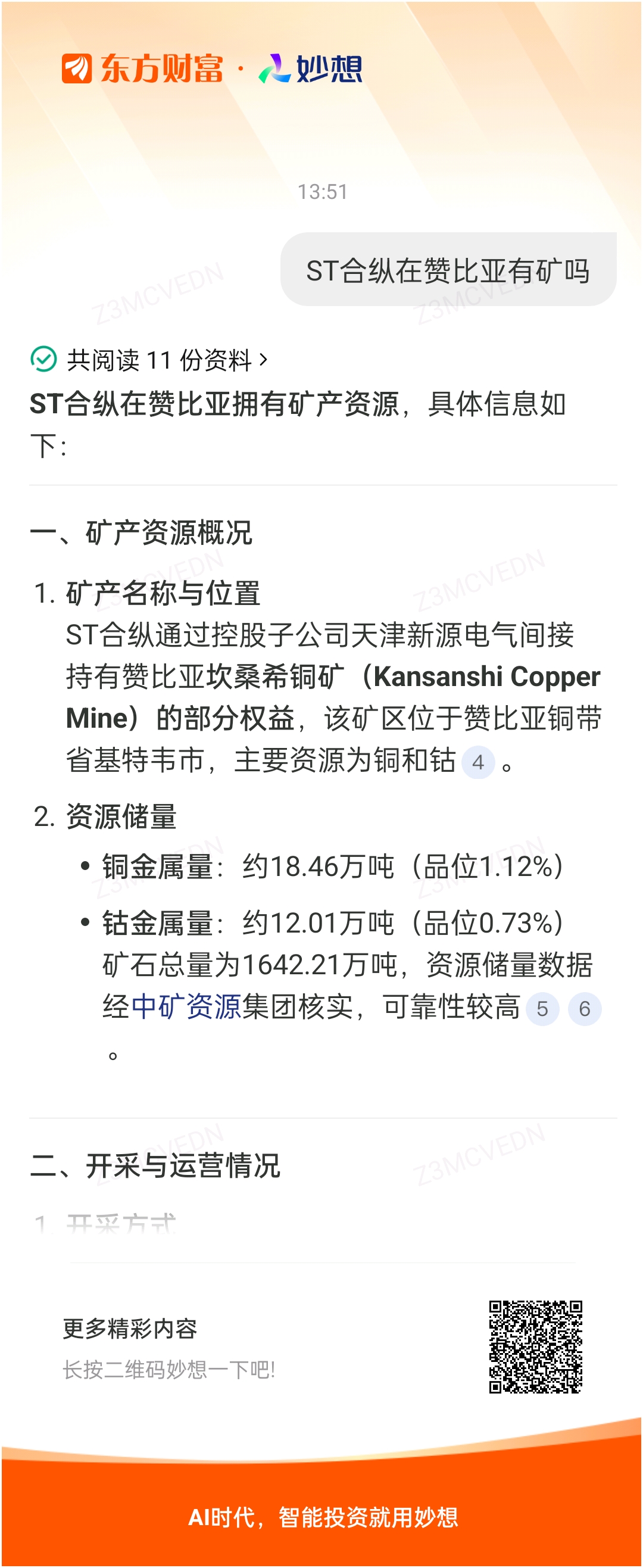 #@妙想,你怎么看?# 妙想一下:ST合纵在赞比亚有矿吗