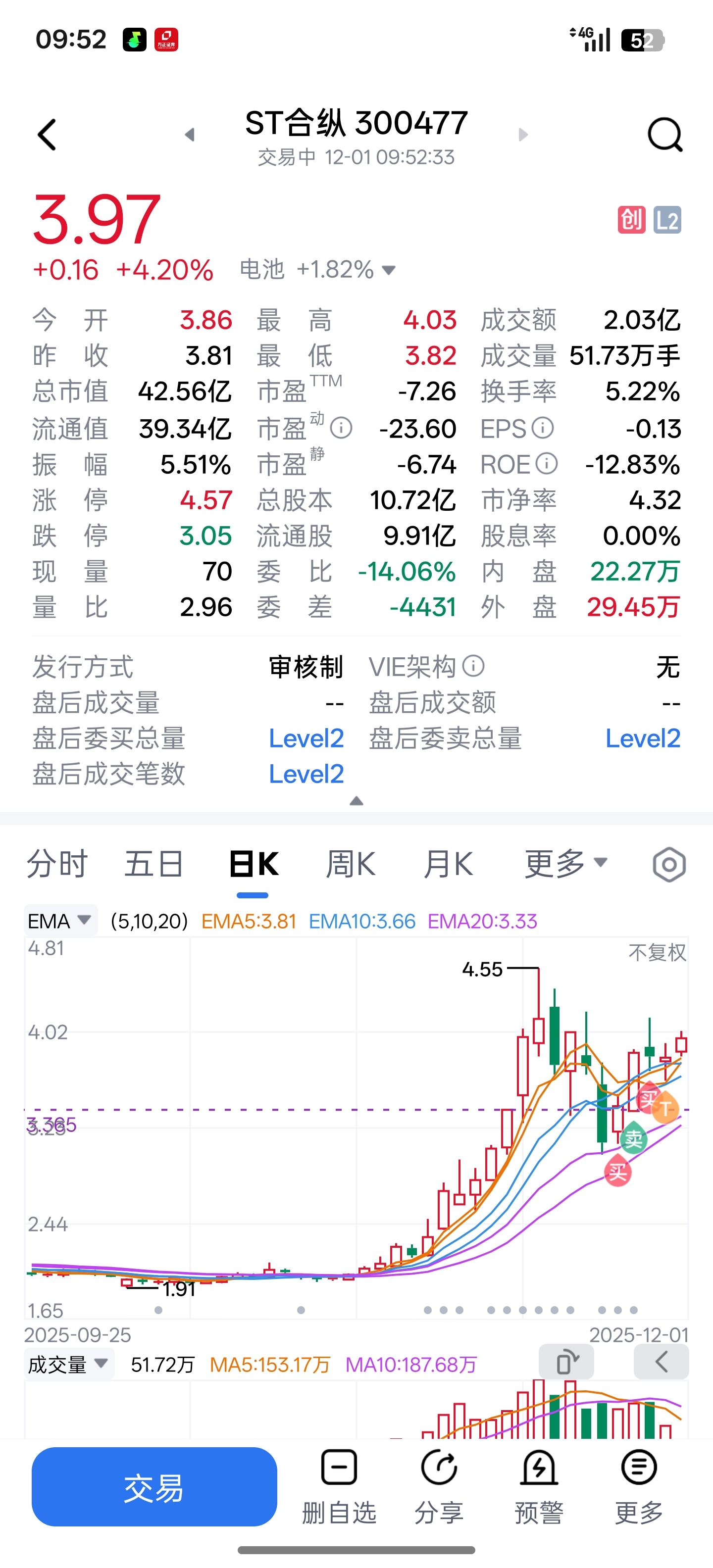 $ST合纵(SZ300477)$ 下来接下我啊,周五减了2成仓位