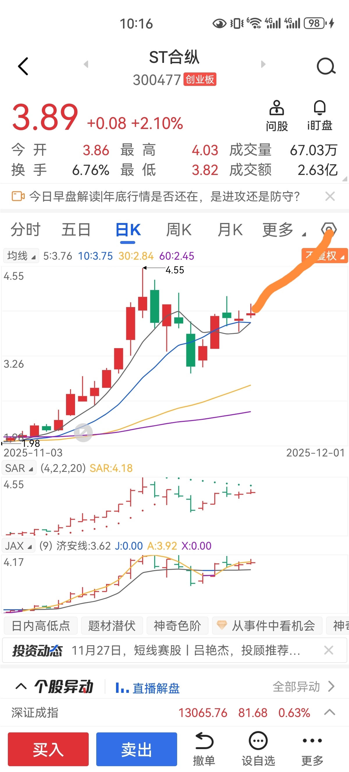 $ST合纵(SZ300477)$ 后市如图,大家千万不要干飞了