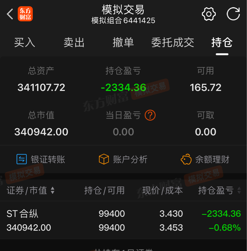 $ST合纵(SZ300477)$ 涨跌和你们挖利好找利空有个屁的关系(除非公告大利空!),全靠主力运作,我虽然4.2卖掉了,但回来模拟玩个刺激,今天再跌个9%就都闭嘴了