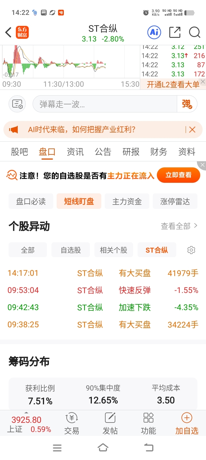 $ST合纵(SZ300477)$ 感觉又要大涨了,今天又有2只大资金在抄底。