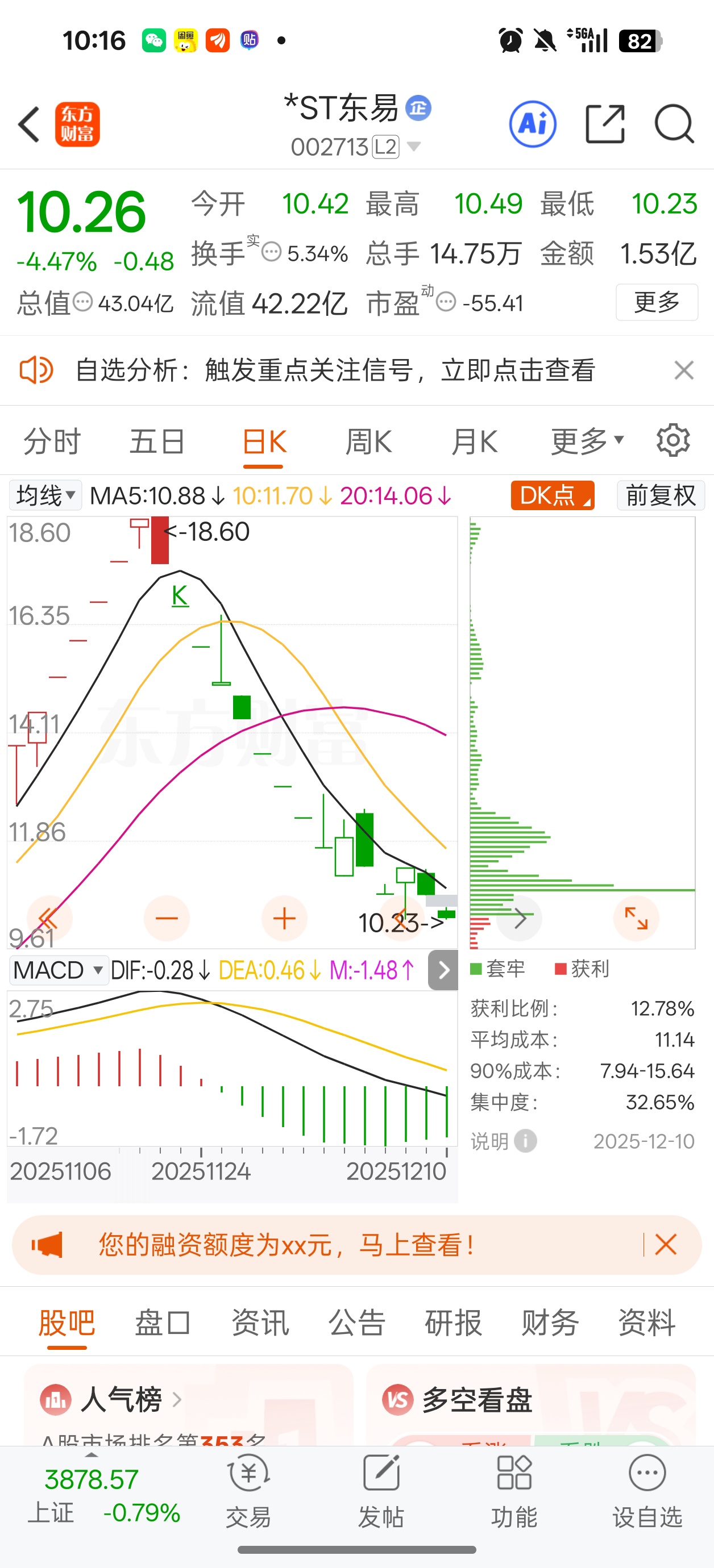 $ST合纵(SZ300477)$ $ST新华锦(SH600735)$ $天普股份(SH605255)$ 放弃幻想吧,ST就是很简单粗暴,新华锦能抄你家[我带利润及时跑了],正平这一字跌停让人大开眼界。这个板块任何股票都需要边打边撤还行,没回到次高就不能抄底!