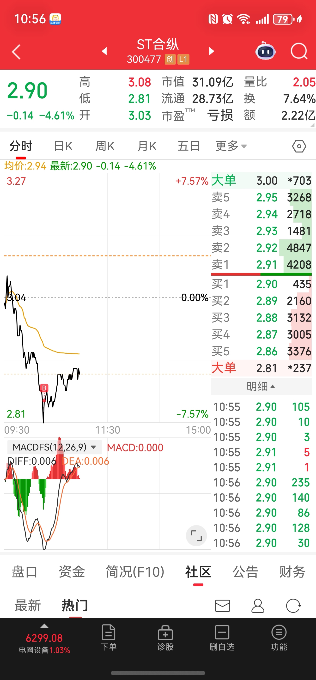 $ST合纵(SZ300477)$ 大爷的再跌继续补