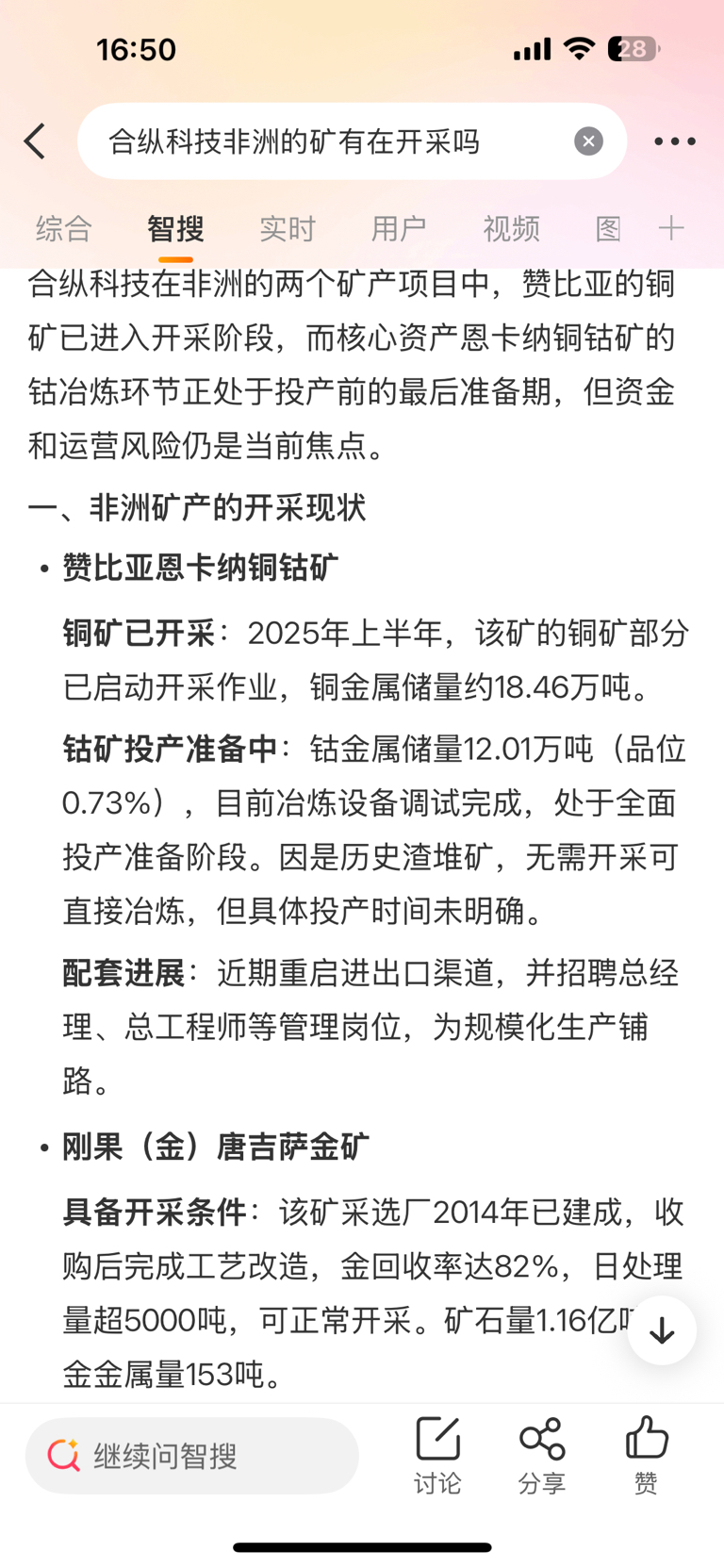 $ST合纵(SZ300477)$ 微博智搜,拥有铜、钴、黄金。