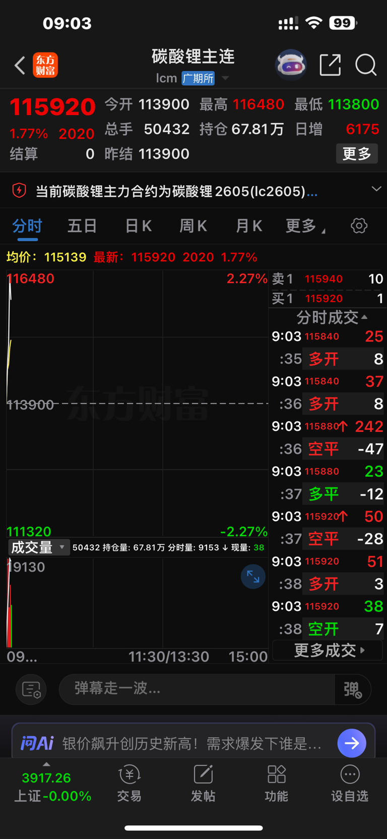 $ST合纵(SZ300477)$ 碳酸锂开始疯牛行情