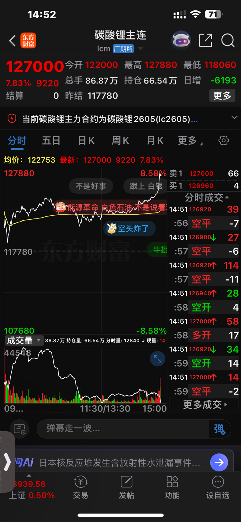 $ST合纵(SZ300477)$ 碳酸锂继续发疯中