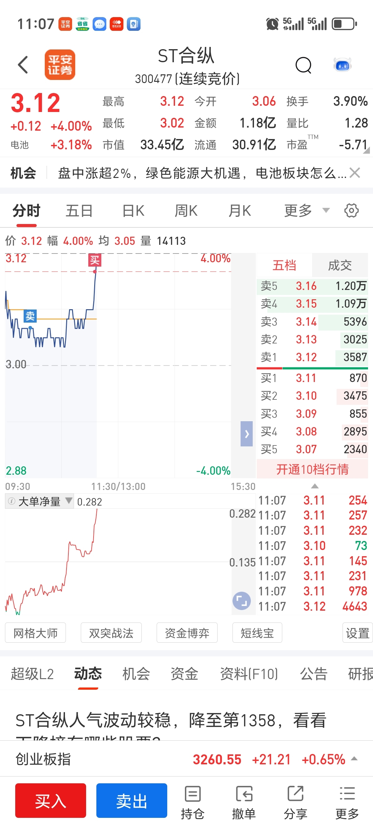 $ST合纵(SZ300477)$ 304卖的 看到其他锂电池大涨 挂单305不舍得306这下好了 现在重新挂单310追高买入