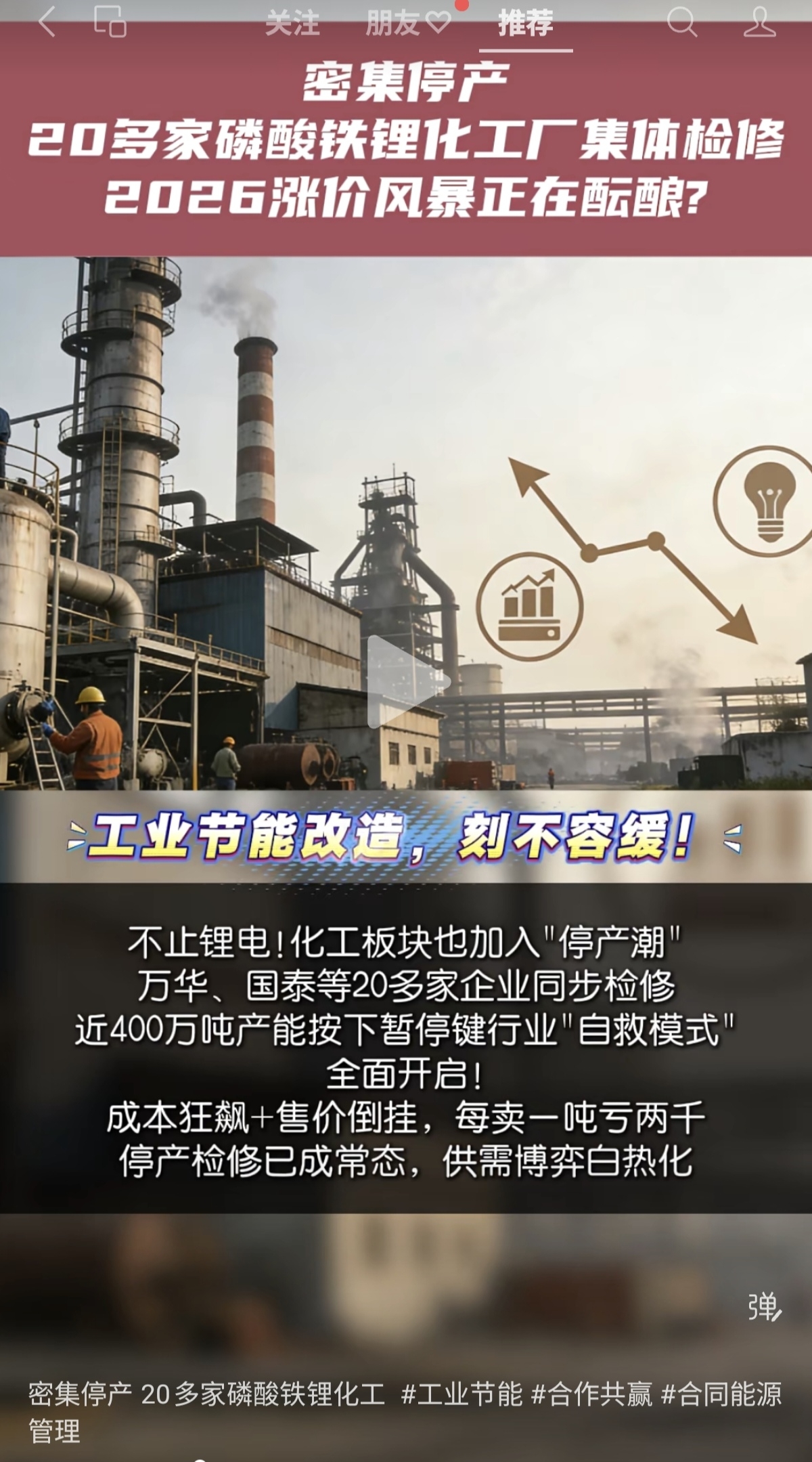 $ST合纵(SZ300477)$ 1. 行业供需联动:湖南裕能作为磷酸铁锂龙头,其产能、检修、提价等行为影响磷酸铁需求与价格;如2026年1月检修致磷酸铁锂减产,间接推涨磷酸铁价格,利好ST合纵磷酸铁业务量价与毛利。