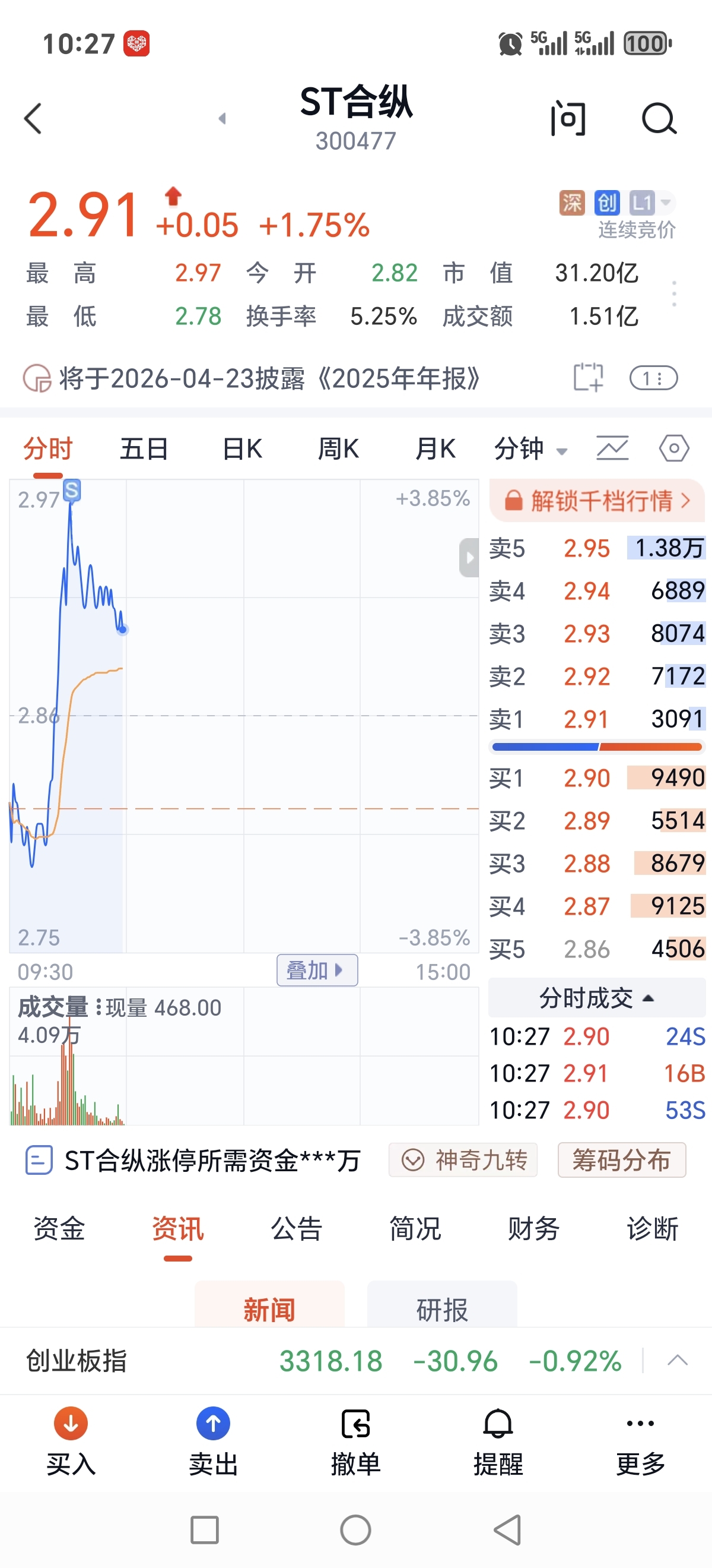 $ST合纵(SZ300477)$ 勇敢T出,下午接回,你说,我能!