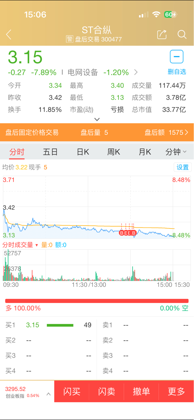 3.2建仓的...估计是建早了,共买了100手,1万股