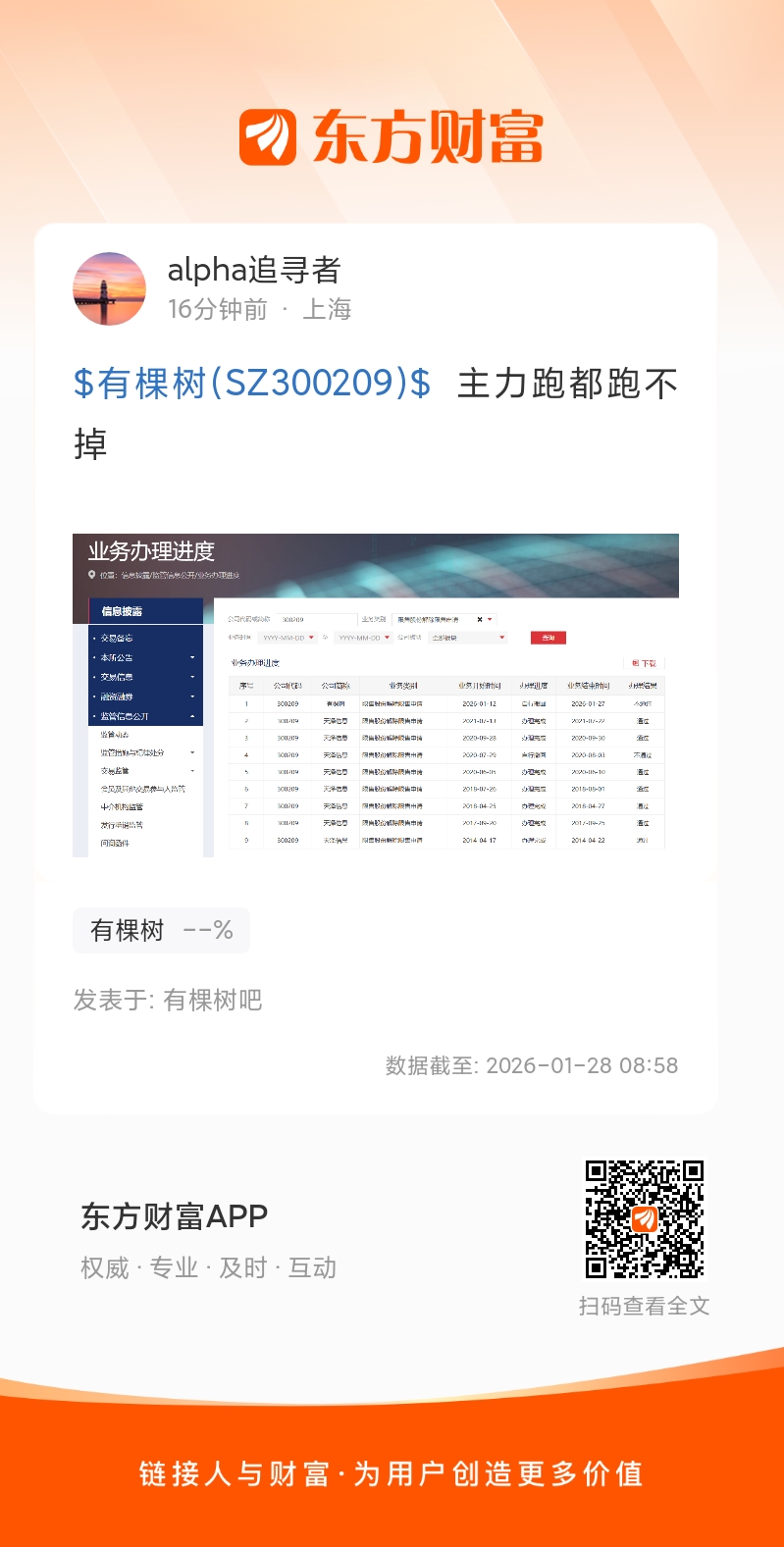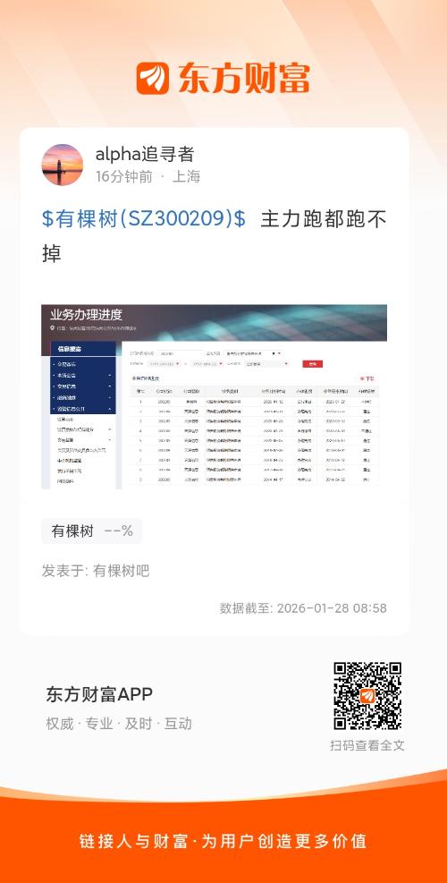 $有棵树(SZ300209)$  主力跑都跑不掉