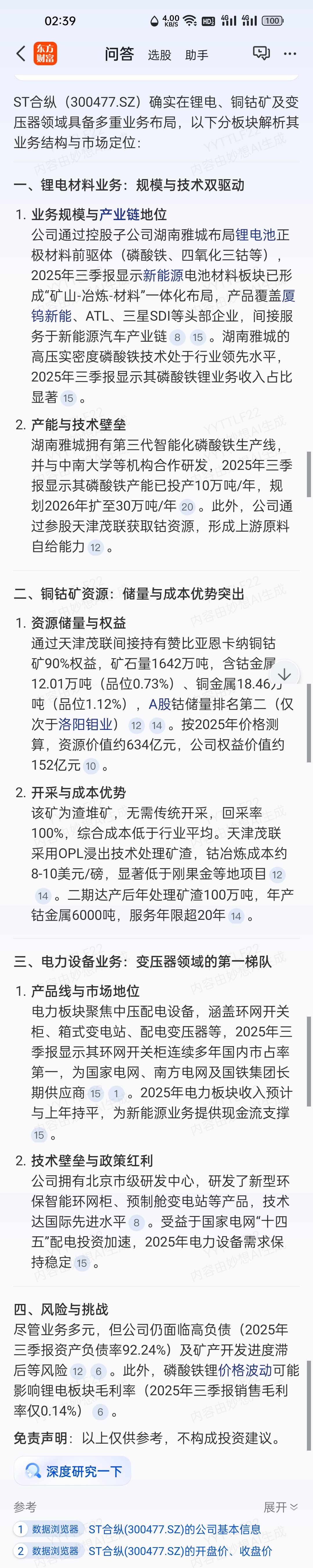 sy合纵矿产资源丰富,按2025年铜钴矿资价值640亿元而st合纵拥有权益380亿元,金矿银矿评估价介值82亿元……