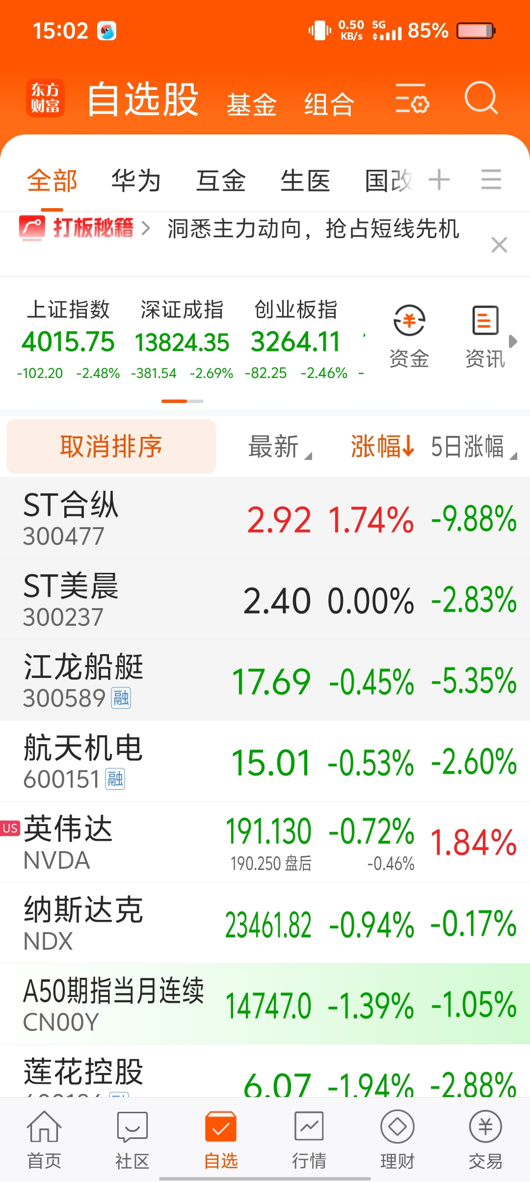 $ST合纵(SZ300477)$ 啥情况,自选股唯一红色。难不成熊来了?