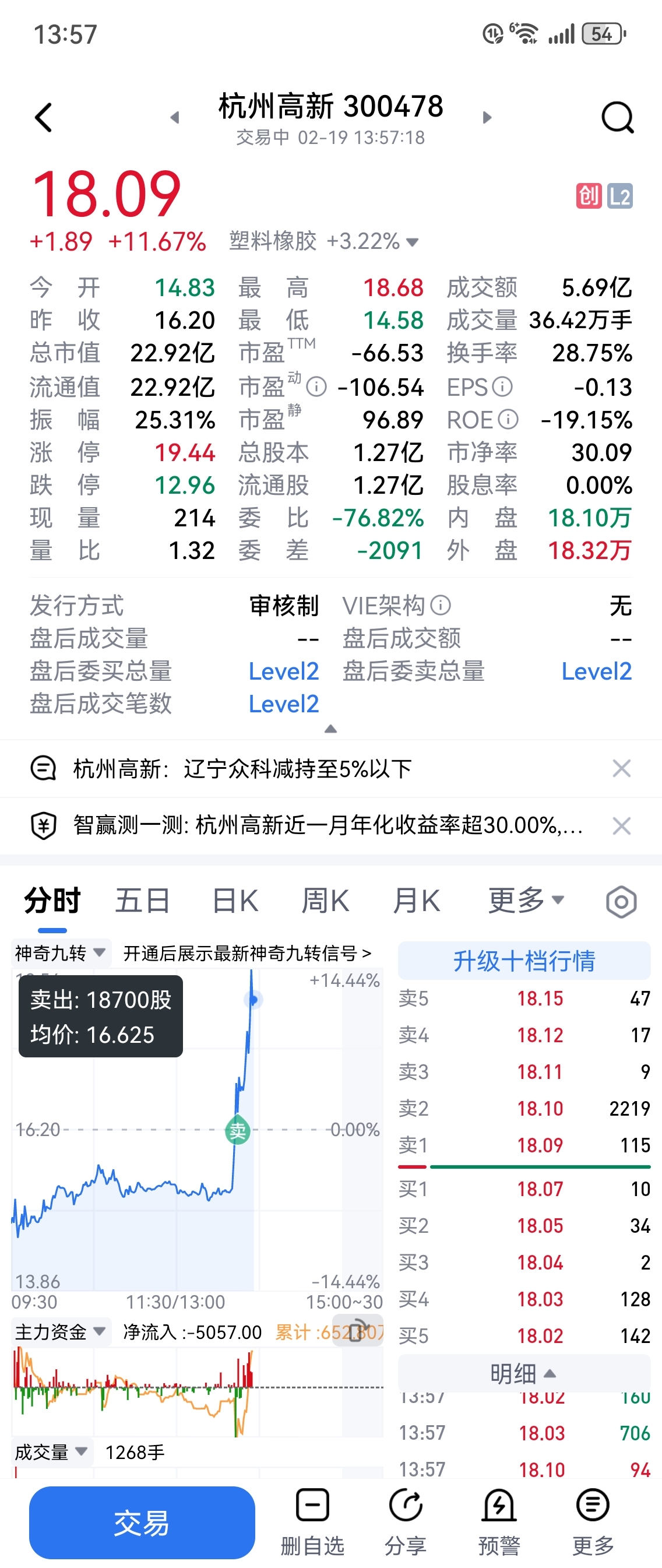 $杭州高新(SZ300478)$ 靠靠靠靠靠
