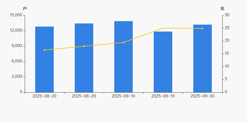 2025年8月20日至今,公司股东户数有所增长,区间涨幅为2.91%。2025年8月20日至2025年9月30日区间股价上涨51.31%。