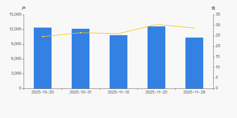 2025年10月20日至今,公司股东户数显著下降,区间跌幅为16.39%。2025年10月20日至2025年11月28日区间股价上涨16.53%。