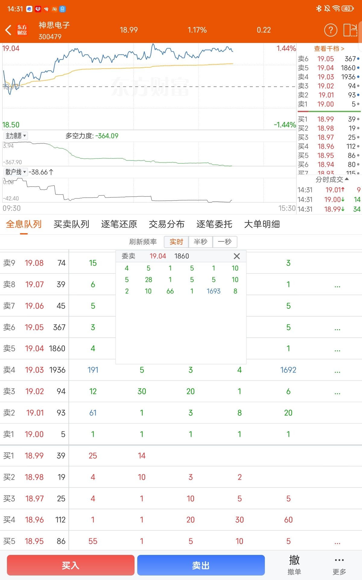 $神思电子(SZ300479)$ 19.03跟19.04这个大户挂了那么多卖单你啥意思。这个熊价格了你还卖那么多。你有钱烧的吗1692跟1693肯定是一个户。恶意砸盘