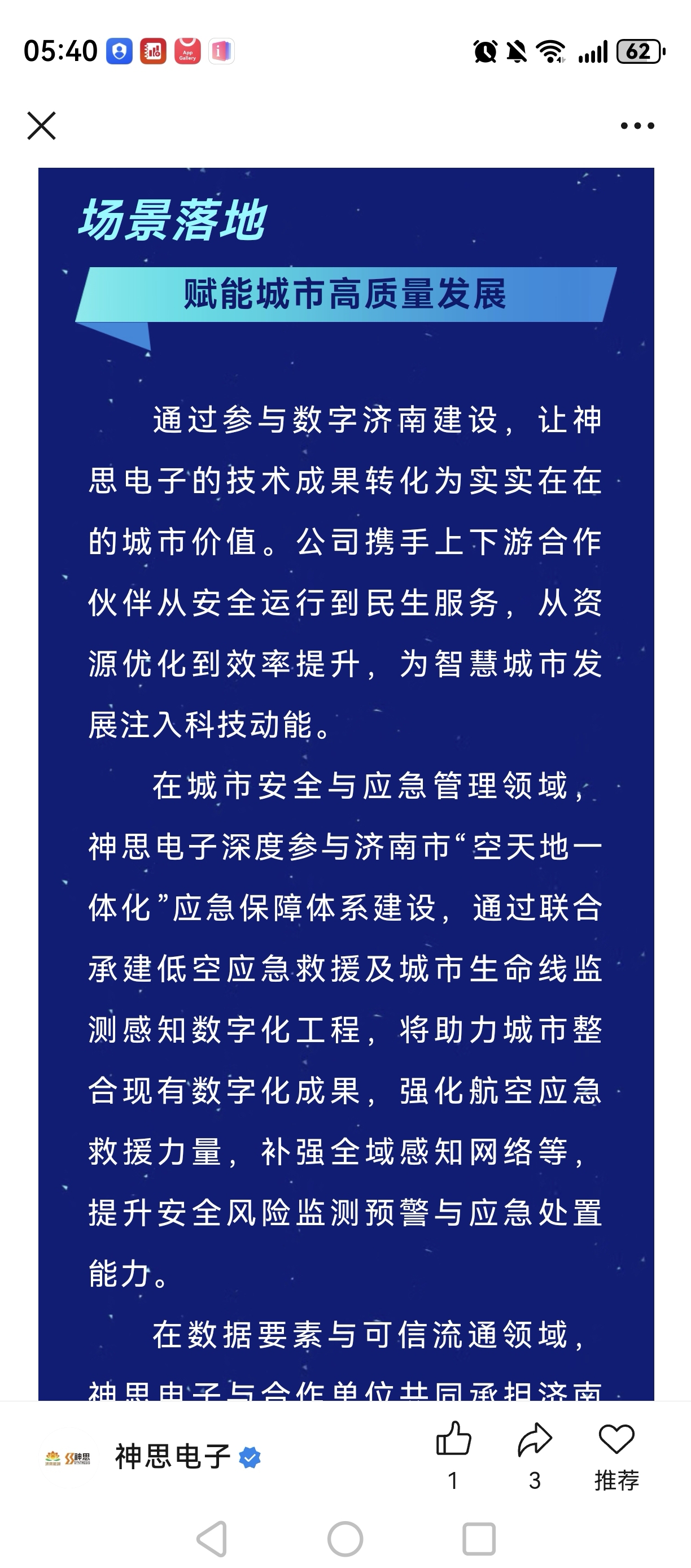 从技术实力和成果落地的角度来看,这个公司正在转向快速发展期,就看潍坊,青岛和烟台等会不会也会招标智慧城市建设,另外就是其神经网络学习系统到底处于什么实力,毕竟只有会自主学习的AI才能更自主,更聪明。